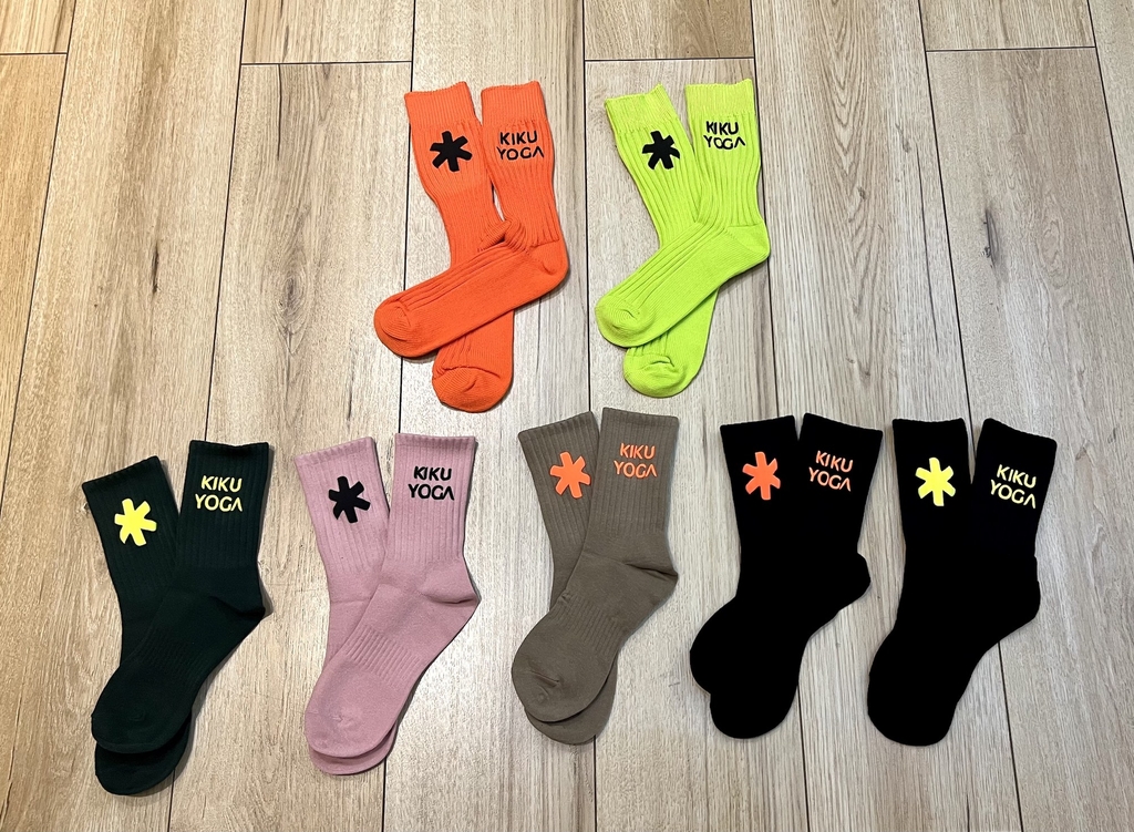 Mẫu tất (vớ) của nhà Kiku Yoga, nhiều màu sắc đa dạng, không trơn, không quá dính để tập luyện bộ môn chuyển động trên sàn hoặc mặc thời trang hàng ngày đều được.